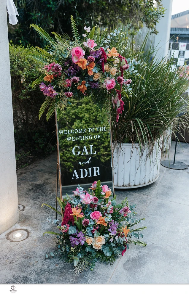 החתונה של גל ואדיר הייתה אירוע מלא בצבעים חיים ושמחים, שתוכנן ועוצב מתוך תשומת לב לפרטים ותחושת חום. גל ואימא אורית שהן מפיקות אירועים עסקיים, ידעו בדיוק איך לתכנן ולהפיק את האירוע המושלם, ולכן העבודה איתן הייתה לא רק מקצועית אלא גם מהנה. כמישהי מהתחום, היא הבינה את המשמעות של כל פרט – והיה לנו כבוד להכניס לתוך החתונה את כל היצירתיות והעיצוב שהיא רצתה.