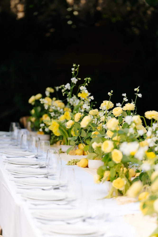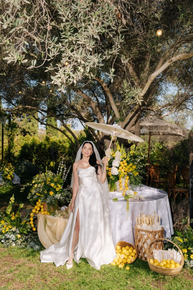 החתונה של קייט ועמית נערכה בסוף הקיץ, בטירה קסומה, והייתה אירוע אינטימי וקטן שמדגיש תחושת חיבור ויוקרה. הסגנון היה נקי, רענן ואלגנטי, עם דגש על לימונים חיים ופרחים לבנים מפוארים — שילוב שמביא תחושה של טבעיות לצד יוקרה עדינה.