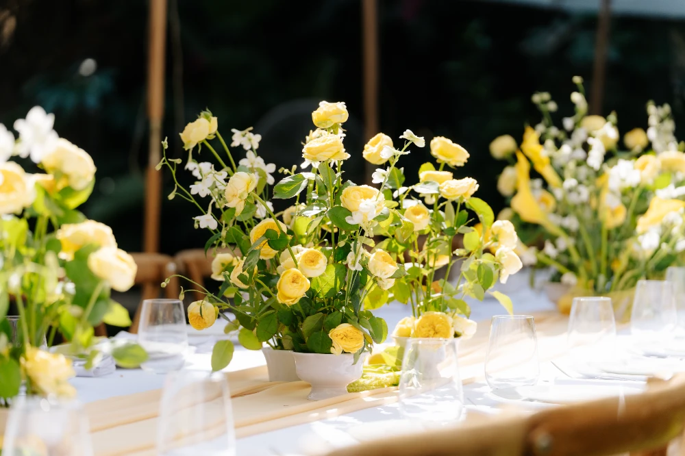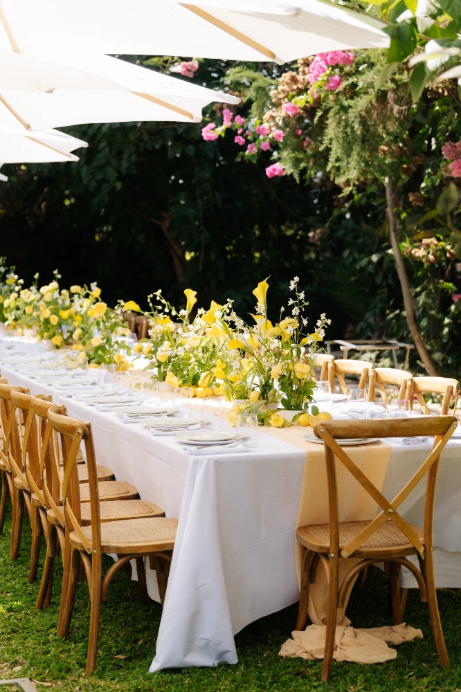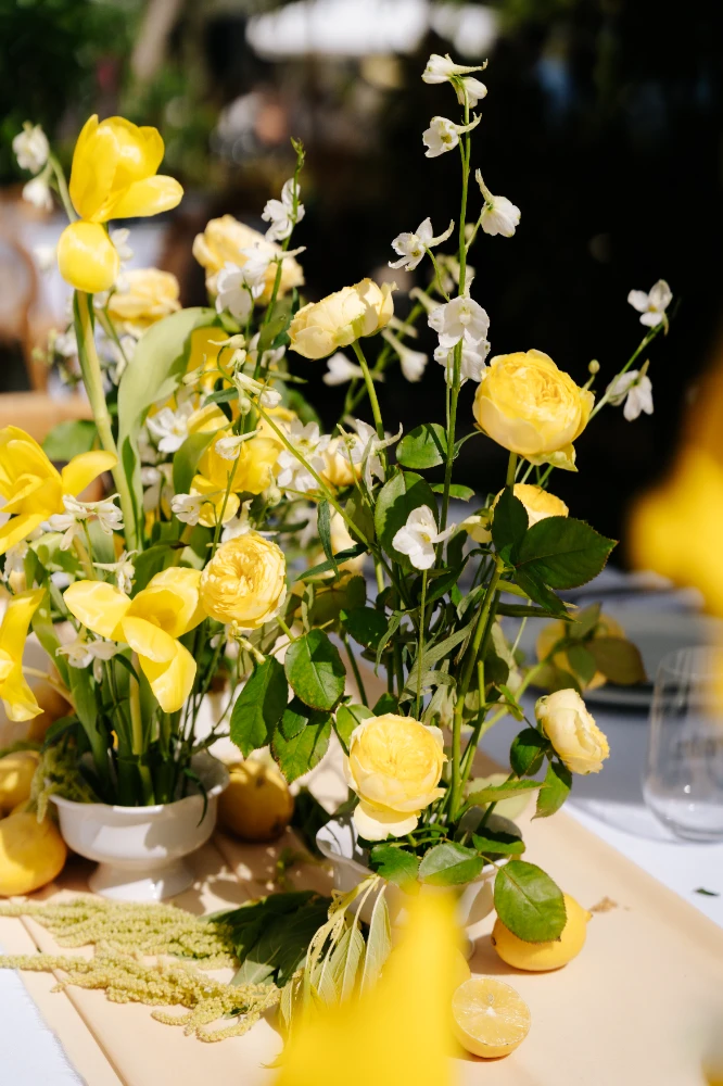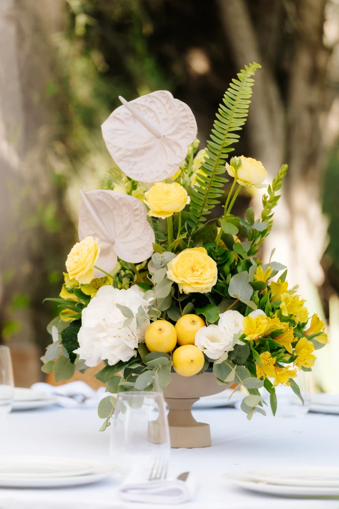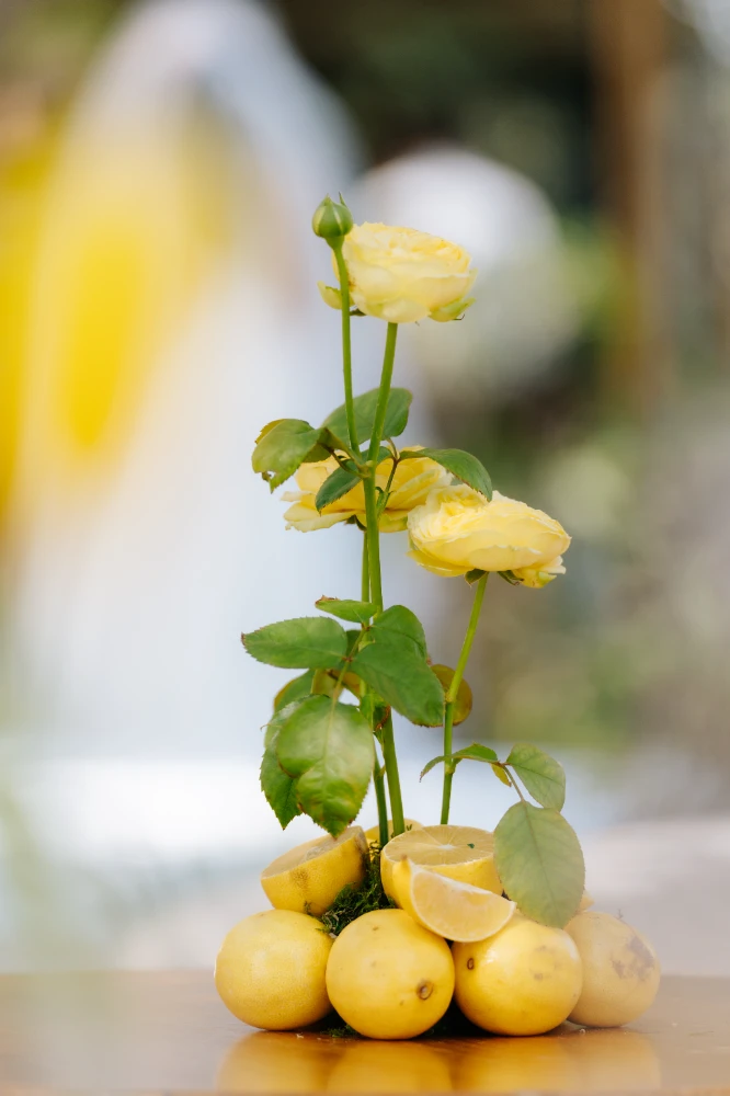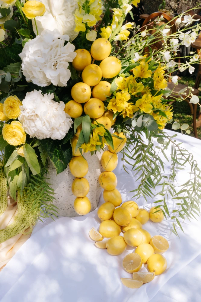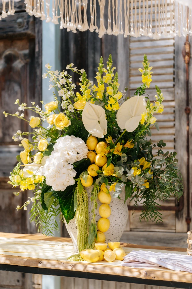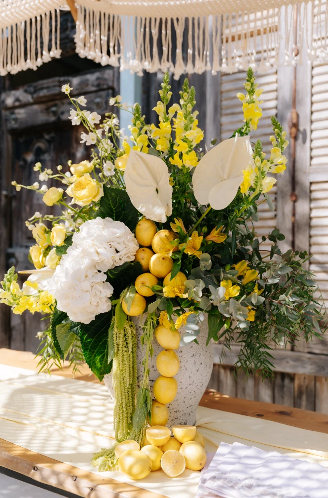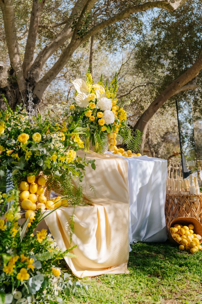 כל סידור פרחים נבחר בקפידה, כשהוא משתלב בהרמוניה עם האלמנטים האחרים בחלל. לצד הסידורים הקלאסיים, שולבו מאות לימונים, שהוסיפו נגיעה שמחה, קלילה וצבעונית, יחד עם סידורי יפנים מסוג איקבנה — שמביאים קו נקי, אומנותי ומדויק, ומעניקים לכל פינה תחושה של הרמוניה ודיוק עד הפרט האחרון.התוצאה הייתה חתונה אינטימית, זורמת, רעננה ויוקרתית, עם דיטיילים שמדגישים את הטבעיות והסגנון האישי של הזוג, והופכים את האירוע לחוויה ייחודית ומרהיבה.