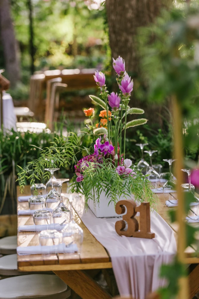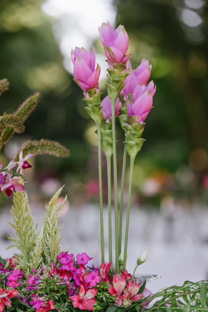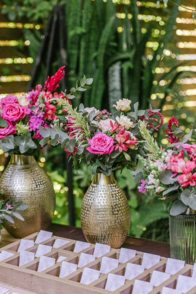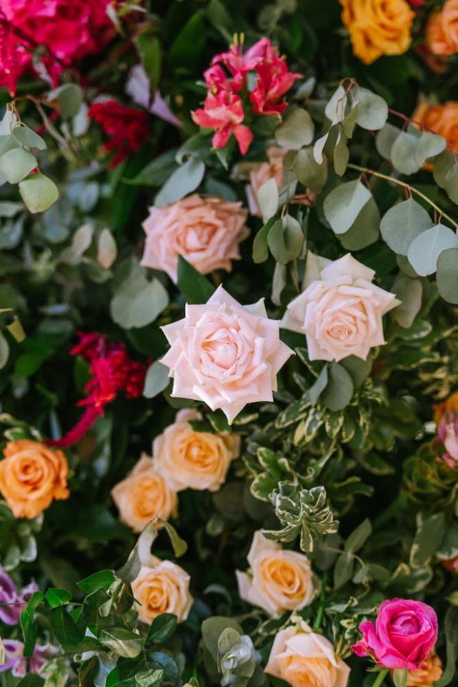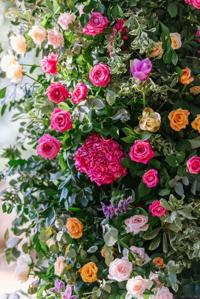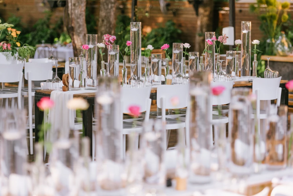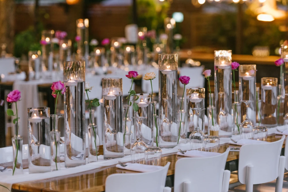 הצבעים שהובילו את העיצוב היו כתום, ורוד וסגול, שילוב צבעים חמים ומרגיעים שהפכו את החלל למקום קסום ומיוחד. השילוב בין צבעים עזים ודרמטיים ליצירת מראה מלא חיים, יחד עם מיקס של גבהים בעיצוב השולחנות ובפרחים, יצר אווירה ייחודית שגרמה לכל מי ששהה באירוע להרגיש כאילו הוא נמצא בעולם אחר – צבעוני, מלא תעוזה ומרענן.