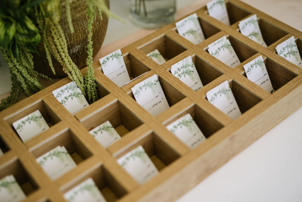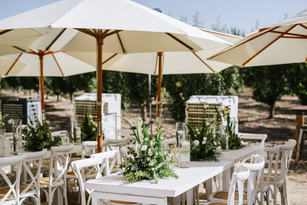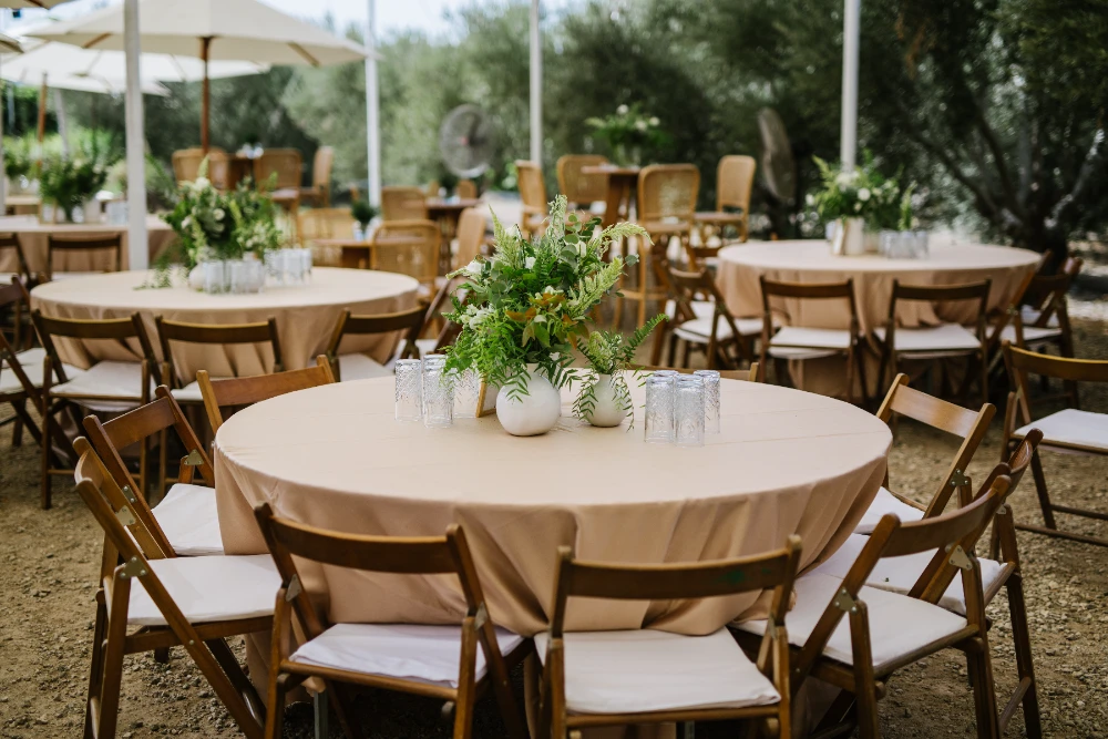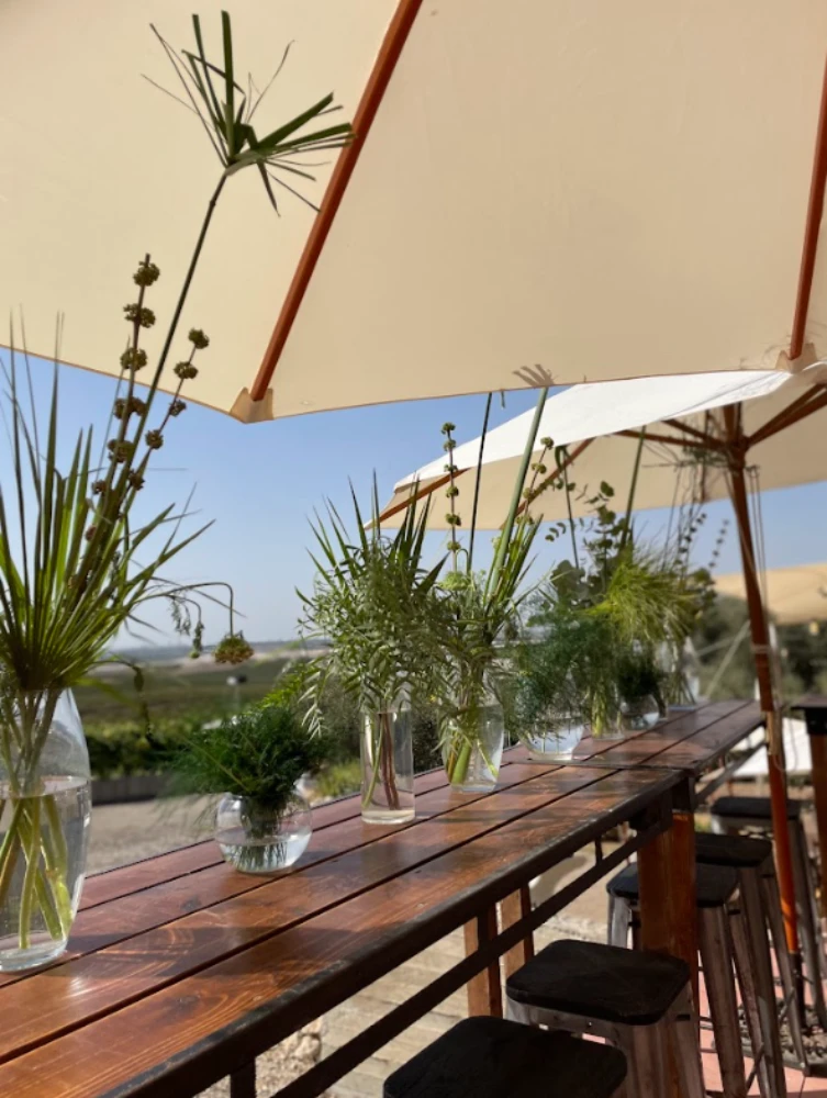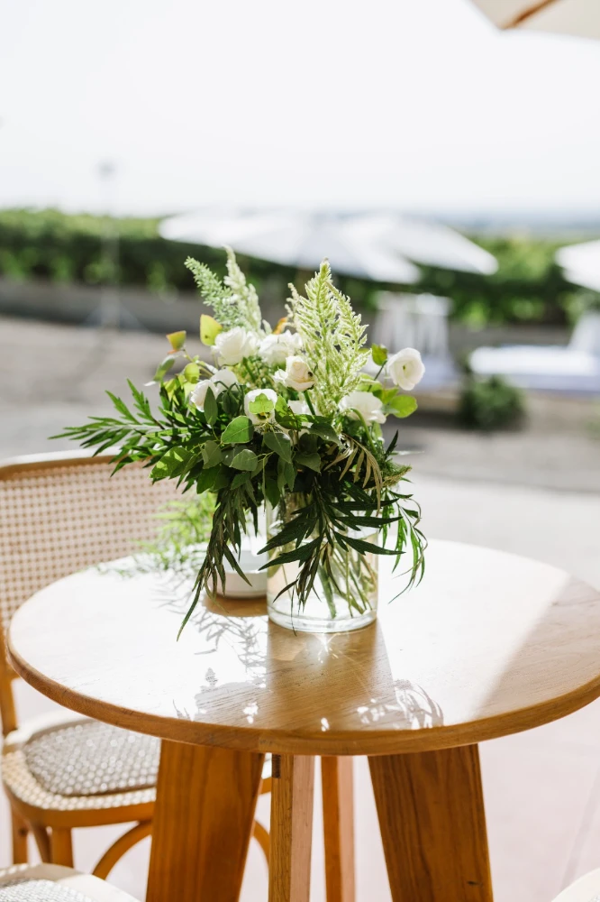 החתונה הייתה כולה בגווני ירוק עזים, כשהשדות הפתוחים של כרמי יוסף שימשו רקע קסום ומרגיע. השילוב של הירוק עם אנטוריומים לבנים, יצר איזון מושלם בין הטבעי והאלגנטי. העיצוב שיחק עם אלמנטים טבעיים ומודרניים, כשהצבע הירוק היה הדומיננטי, והאנטוריומים הלבנים הוסיפו נופך של רעננות, ניקיון ופשטות יפיפייה.