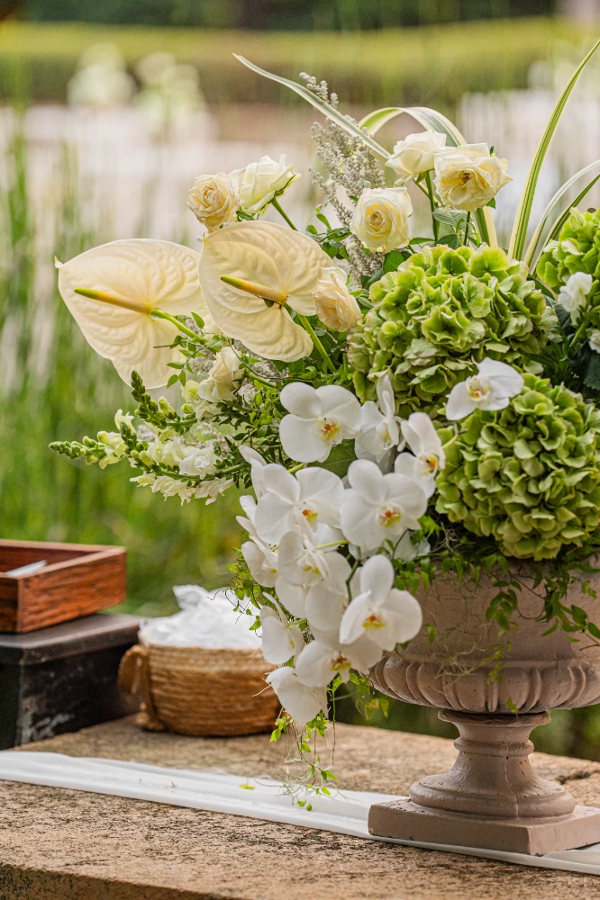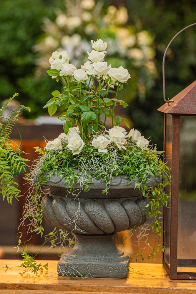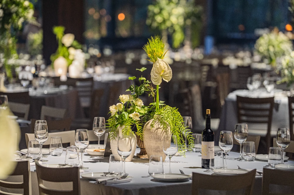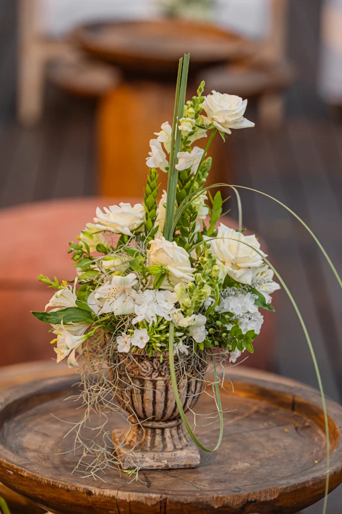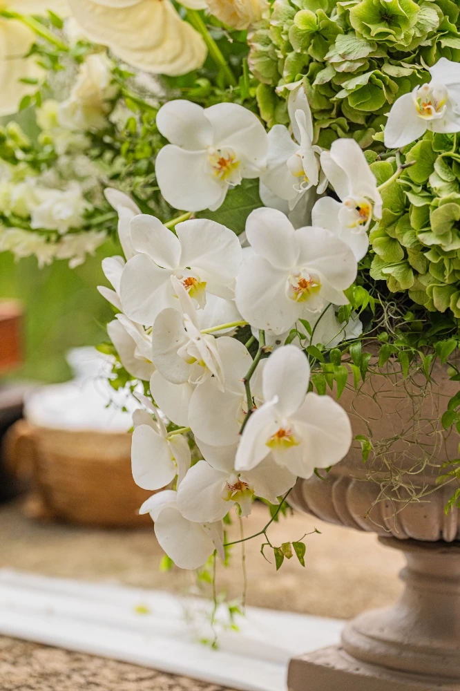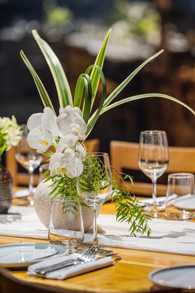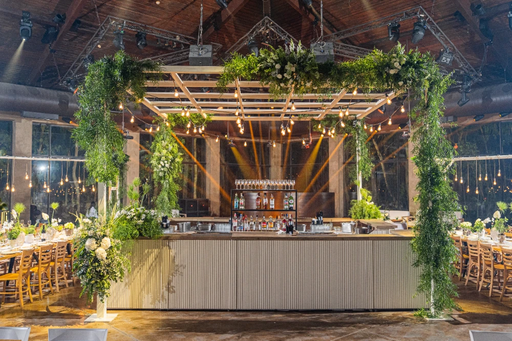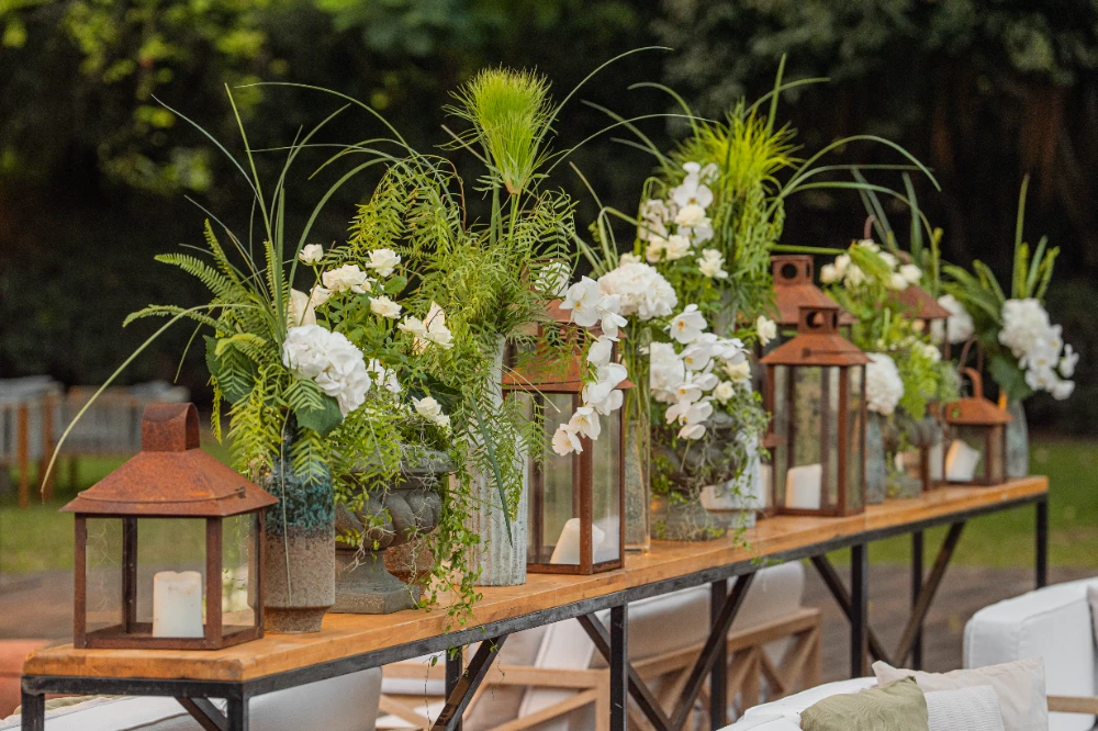 את השולחנות והפינות המעוצבות השלמנו עם כלי חרס בסגנון יווני — טקסטורות טבעיות, צורות נקיות, ותחושה של אותנטיות ים־תיכונית. לצידם נבחרו ספות וכריות בגווני חום, ניוד, לבן וירוק — שילוב מאוזן ורגוע שהעניק לאירוע מראה טבעי, הרמוני ונצחי.שיא הערב היה החופה: עשירה, מלאה חיים, ומחאת פרחים מרהיבה שהשתלבה עם התאורה הרכה ועם המתחם כולו. פרחים בשפע, שכבות של ירוק, לבן וגוונים טבעיים יצרו תחושה של מרחב קסום, אינטימי ומרגש.זה היה אירוע שכולו מחשבה, דיוק, קסטום־מייד אמיתי, ואהבה גדולה ליובל וטל — וליופי של עיצוב שנוצר במיוחד עבורם.